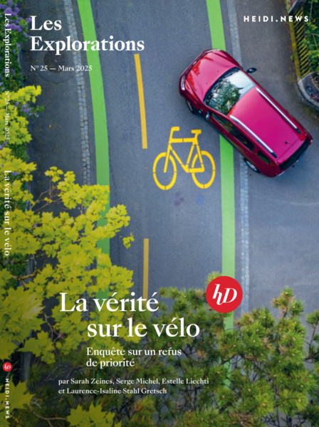 «La vérité sur le vélo. Enquête sur un refus de priorité», No 25, par Sarah Zeines, Serge Michel, Estelle Liechti et Laurence-Isaline Stahl Gretsch.