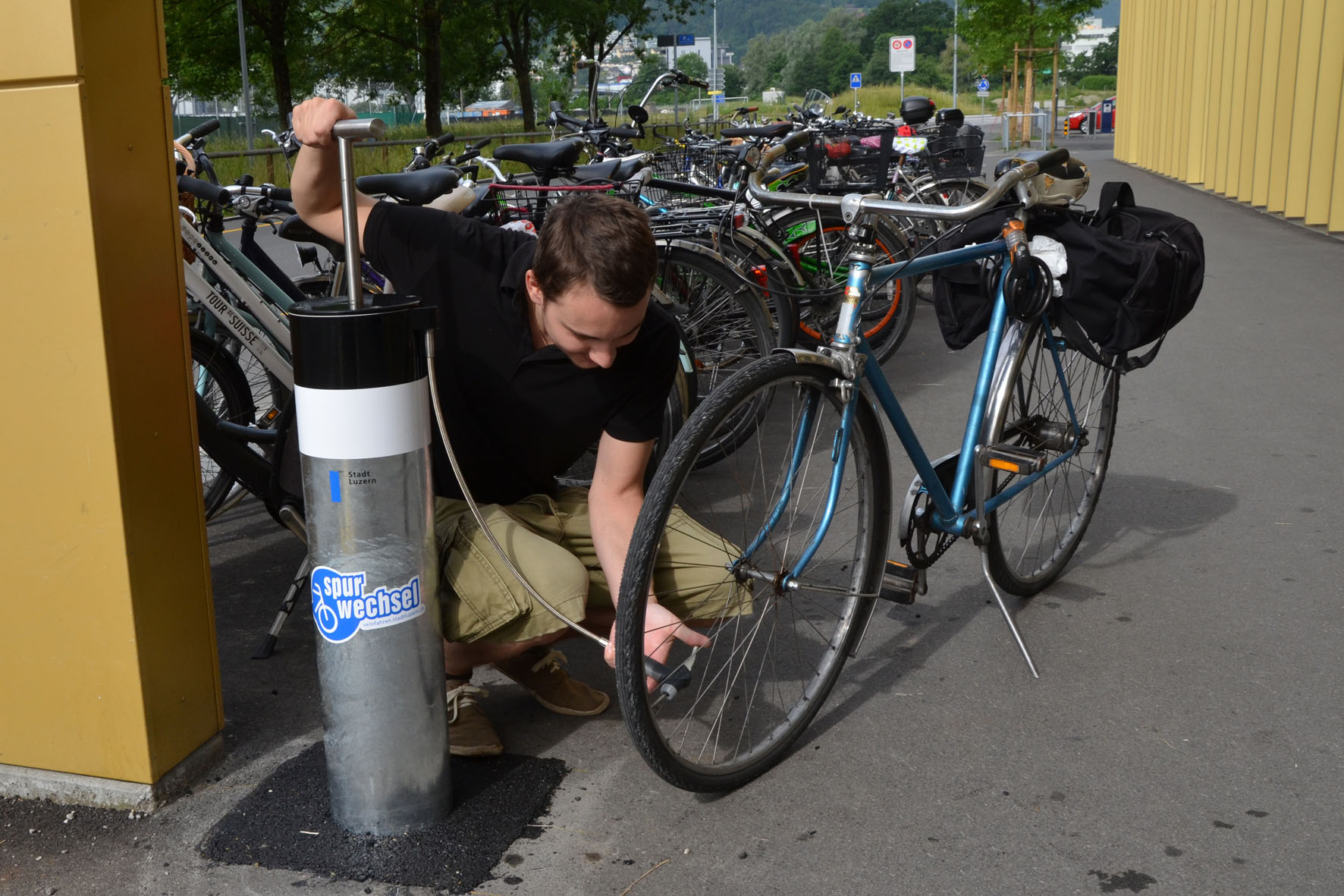 Photo d'une action pour gonfler les pneus (source: Agence Umsicht, Lucerne)