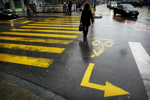 Les piéton·ne·s ont la priorité sur les passages piétons. Les cyclistes peuvent s’engager sur le passage, mais n’ont pas la priorité.