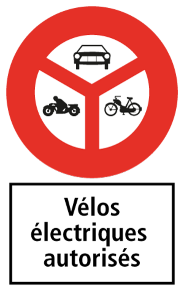 Avec la plaque complémentaire «Vélos électriques autorisés», ces chemins sont autorisés pour les vélos électriques rapides (VAE 45) et lourds.