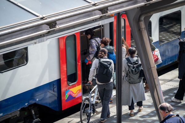Un vélo conventionnel est considéré comme bagage payant. Il peut être transporté dans les espaces prévus à cet effet, dans la limite des places disponibles. Un vélo rangé dans une housse spéciale (par ex. un TranZBag) ainsi que les vélos pliables sont considérés comme un bagage à main et peuvent être transporté gratuitement et sans réservation, à condition que la roue avant soit démontée. Le transport des remorques à vélo est également gratuit. Si je souhaite transporter mon vélo je dois être en mesure de le monter moi-même dans le train et de le suspendre aux fixations prévues à cet effet.
